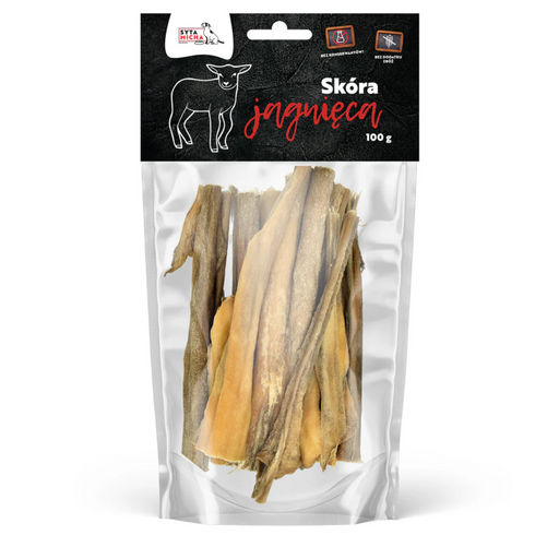Syta MichaSkóra jagnięca dla psa 100g Dlaczego warto podawać psom suszoną skórę jagnięcą? zaspokaja podstawową potrzebę gryzienia...
