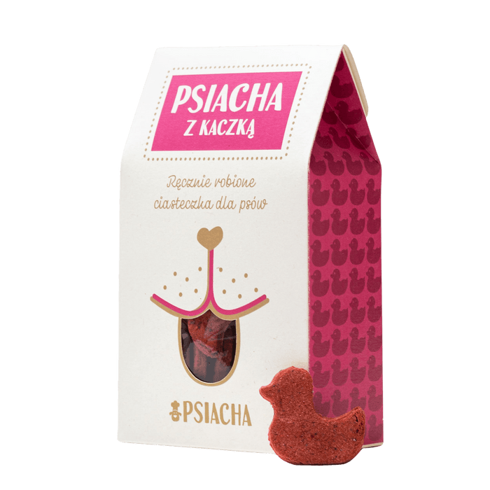 Twojemu psu należy się to, co najlepsze – zdrowe, smakowite i bezpieczne. Właśnie takie są Psiacha z kaczką – ręcznie wypiekane ciasteczka, które powstały z miłości do czworonogów. To przysmaki, które łączą wyjątkowy skład, funkcjonalne działanie i rzemieślniczą jakość. Bez kompromisów.