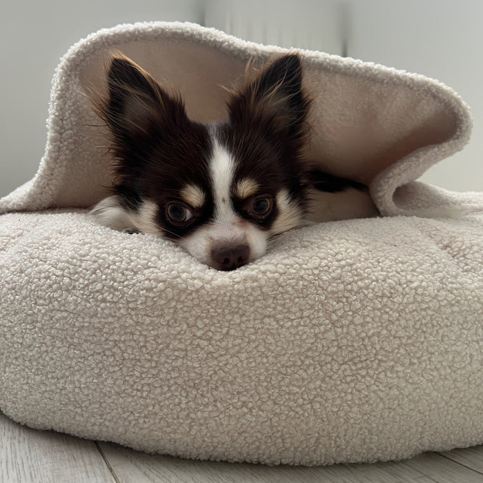PETTO Minku Cozy Ecru – stylowa norka dla psa z tkaniny bouclé