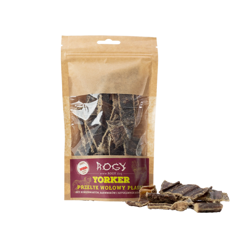 RogyROGY Yorker – Przełyk Wołowy Płaski 80 g Naturalny przysmak dla psów małych ras – smak, który pokochają Każdy opiekun psa wie, że zdrowa przekąsk...