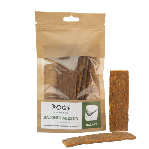 RogyROGY Batonik Mięsny z Bażanta 80 g Naturalna nagroda dla psa, która dba o jego zdrowie i codzienną radość Wybór zdrowej przekąski dla psa wcale n...
