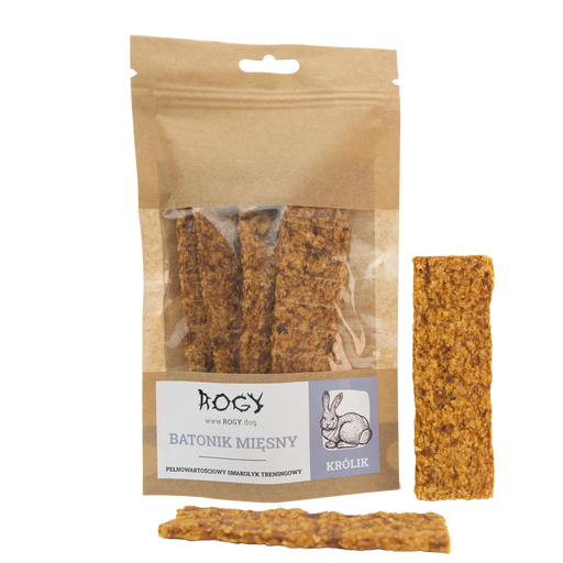 RogyROGY Batonik Mięsny z Królika 80 g Naturalna nagroda, która wspiera zdrowie i codzienną radość Twojego psa Każdy opiekun psa wie, że wybór odpowi...