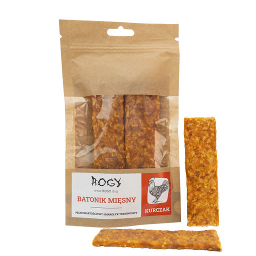 RogyROGY Batonik Mięsny z Kurczaka 80 g Naturalna nagroda treningowa – zdrowa, pyszna i bezpieczna dla Twojego psa Każdy pies zasługuje na nagrodę, k...